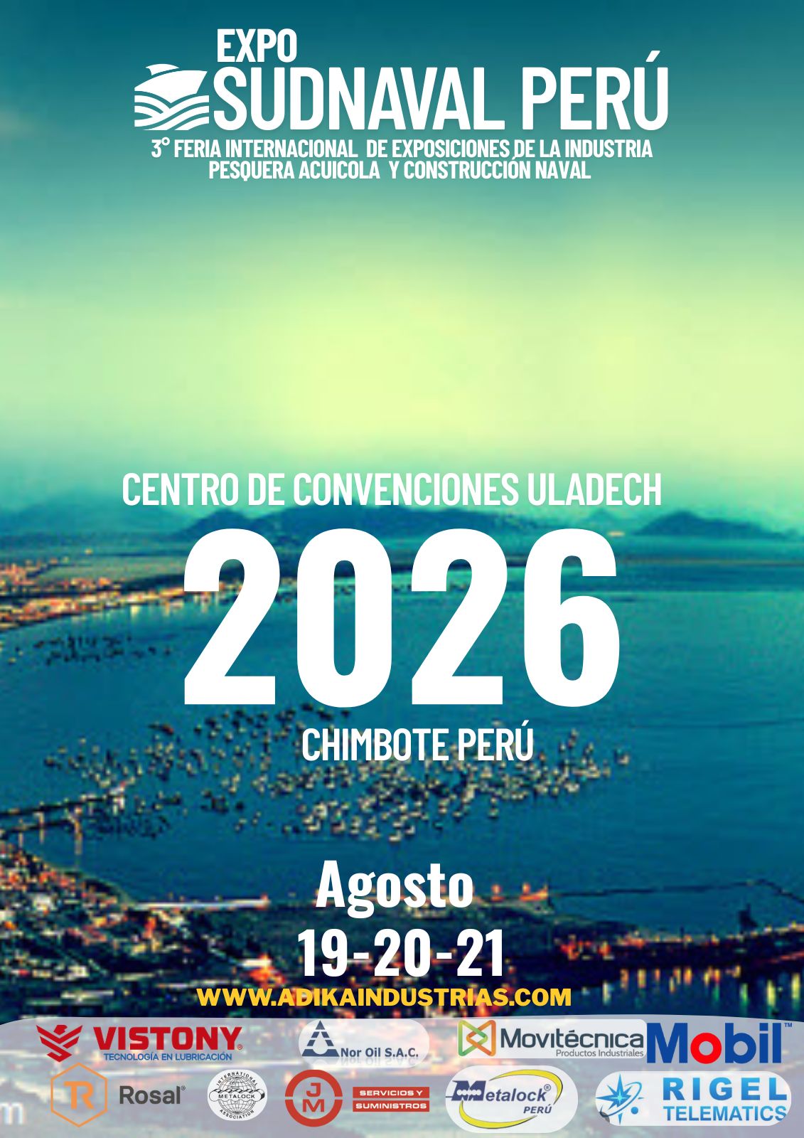 Sudnaval Perú 2026, abrirá sus puertas, los días 19 – 20 y 21 de agosto en un evento en el cual, se reunirá y fortalecerá al sector pesquero, acuícola, naval, industrial artesanal en un evento que estratégicamente ofrece nuevas posibilidades de presentación, interacción, networking, cooperación internacional y eficiente oportunidad de negocios .